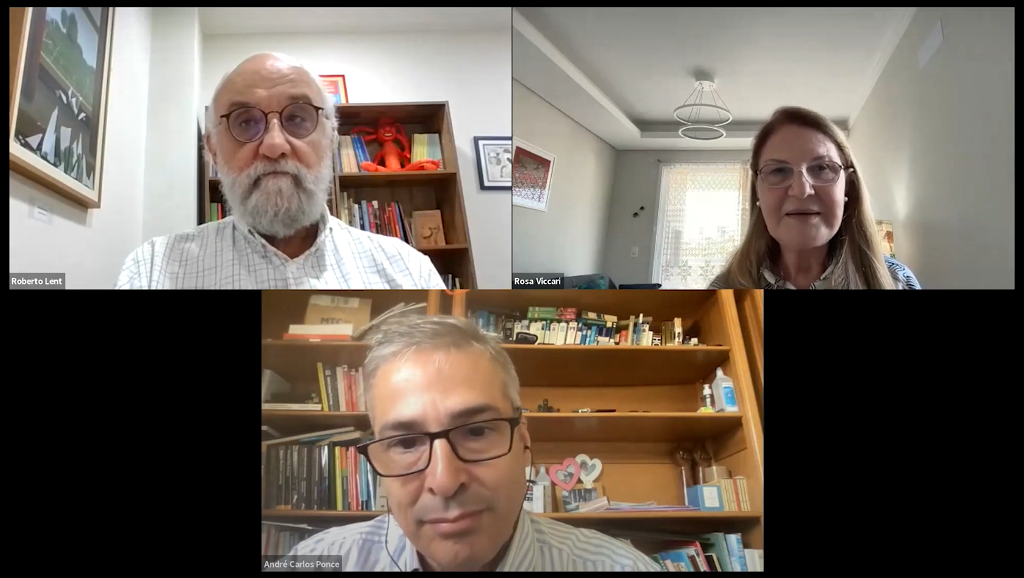 O encontro dessa vez foi transmitido online e contou com a participação de André Ponce de León Carvalho, da Universidade de São Paulo e Rosa Viccari, da Universidade Federal do Rio Grande do Sul.