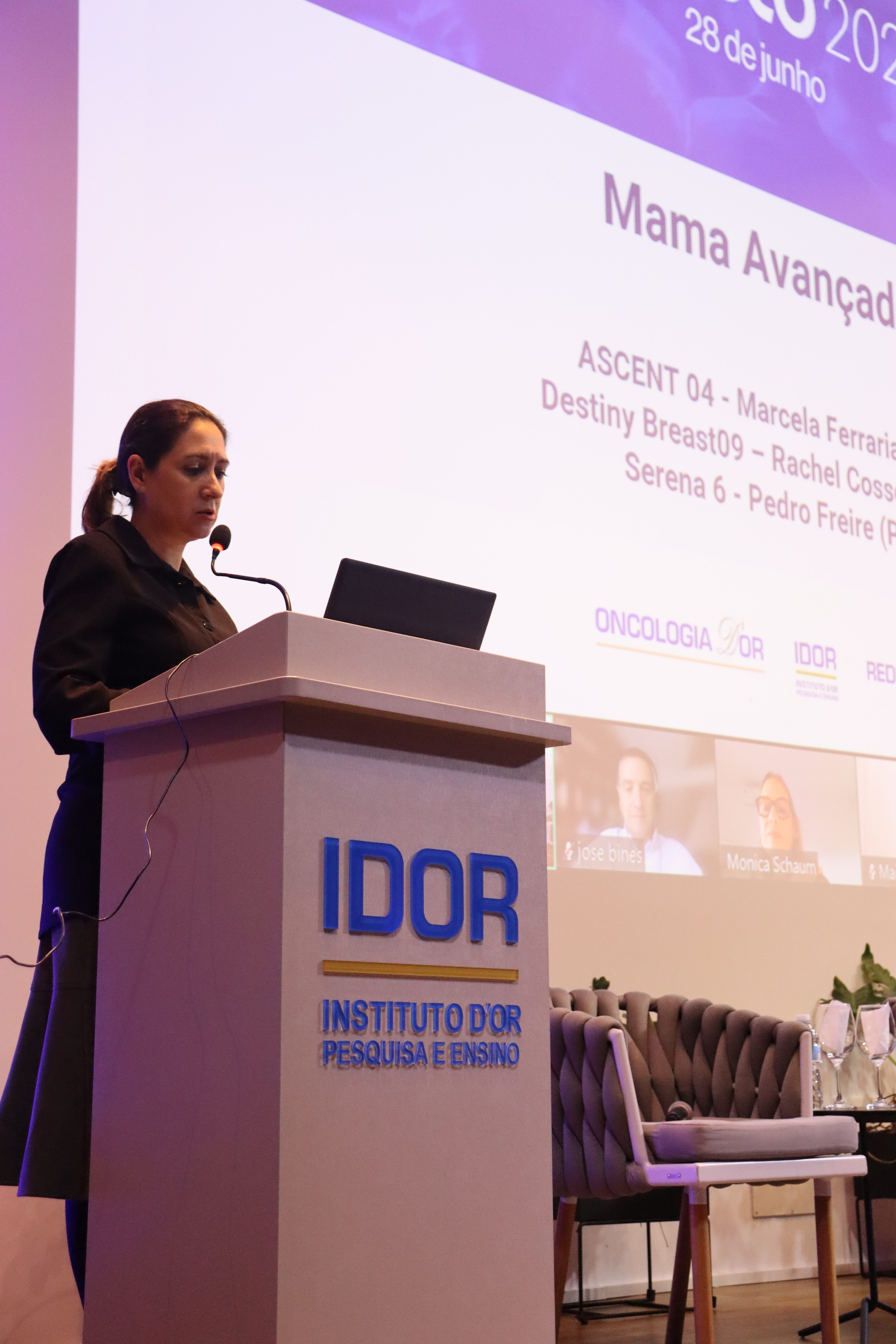 O Prof. Dr. Paulo M. Hoff, presidente da Oncologia D’Or e diretor do IDOR, abriu a programação com os blocos dedicados aos tumores torácicos, câncer de mama inicial e câncer de mama metastático, respectivamente coordenados pela Dra. Milena Mak, Dra. Laura Testa e Dr. José Bines. Cada bloco teve duração de 20 minutos e foi coordenado por um médico(a) com comentários de colegas convidados.